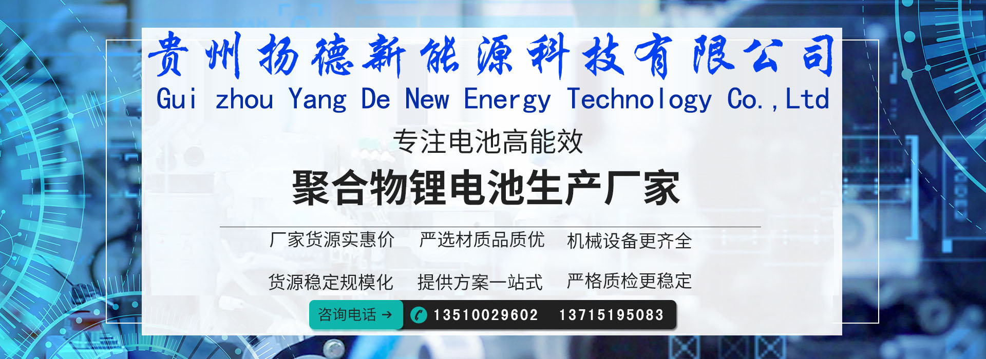 貴州揚(yáng)德新能源科技有限公司擁有廠(chǎng)房面積10000多平米,是一家以研發(fā)、生產(chǎn)制造鋰離子電池、電池管理系統(tǒng)(BMS)的專(zhuān)業(yè)鋰電池電源生產(chǎn)廠(chǎng)家。公司擁有一批鋰離子電池組,BMS研發(fā)、生產(chǎn)的專(zhuān)業(yè)技術(shù)人員,公司技術(shù)力量雄厚,產(chǎn)品研發(fā)和生產(chǎn)能力強(qiáng)。揚(yáng)德能源具備強(qiáng)大的技術(shù)后盾,與貴州大學(xué)、國(guó)防科技大學(xué)和中國(guó)電子科技集團(tuán)建立了良好的合作關(guān)系。揚(yáng)德能源在鋰電池PACK領(lǐng)域具備國(guó)內(nèi)先進(jìn)水平,已獲得多項(xiàng)發(fā)明和實(shí)用新型專(zhuān)利,在國(guó)家一些重大項(xiàng)目中承擔(dān)特種鋰離子電池和特殊用途后備電源的研發(fā)生產(chǎn)任務(wù)。為國(guó)內(nèi)外眾多的不同客戶(hù)提供了很多個(gè)性化設(shè)計(jì)和產(chǎn)品制造。